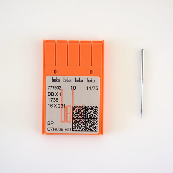 Aguja Bola Mediana Beka para Recta Cabo Delgado corresponde al sistema de aguja 16×231 / DBx1 / 1738. Su punta bola mediana (BP) está diseñada para coser tejidos de punto y telas delicadas, evitando dañar las fibras y garantizando costuras limpias y resistentes.