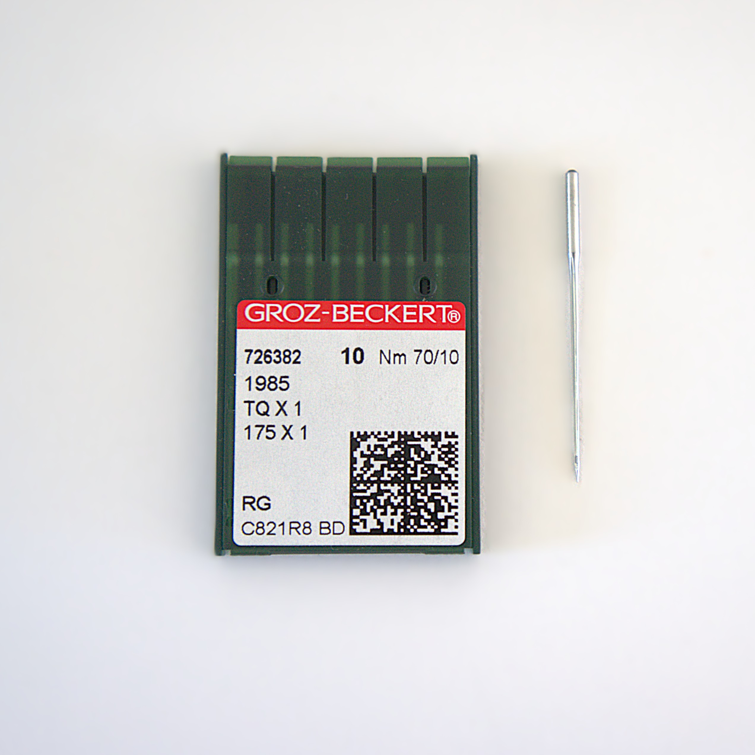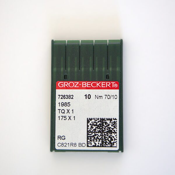 Agujas Groz-Beckert para máquina de coser botón plano, punta ligeramente redondeada (RG) con revestimiento en cromo.Sistema de aguja: 1985/175X1/175X5/TQX1