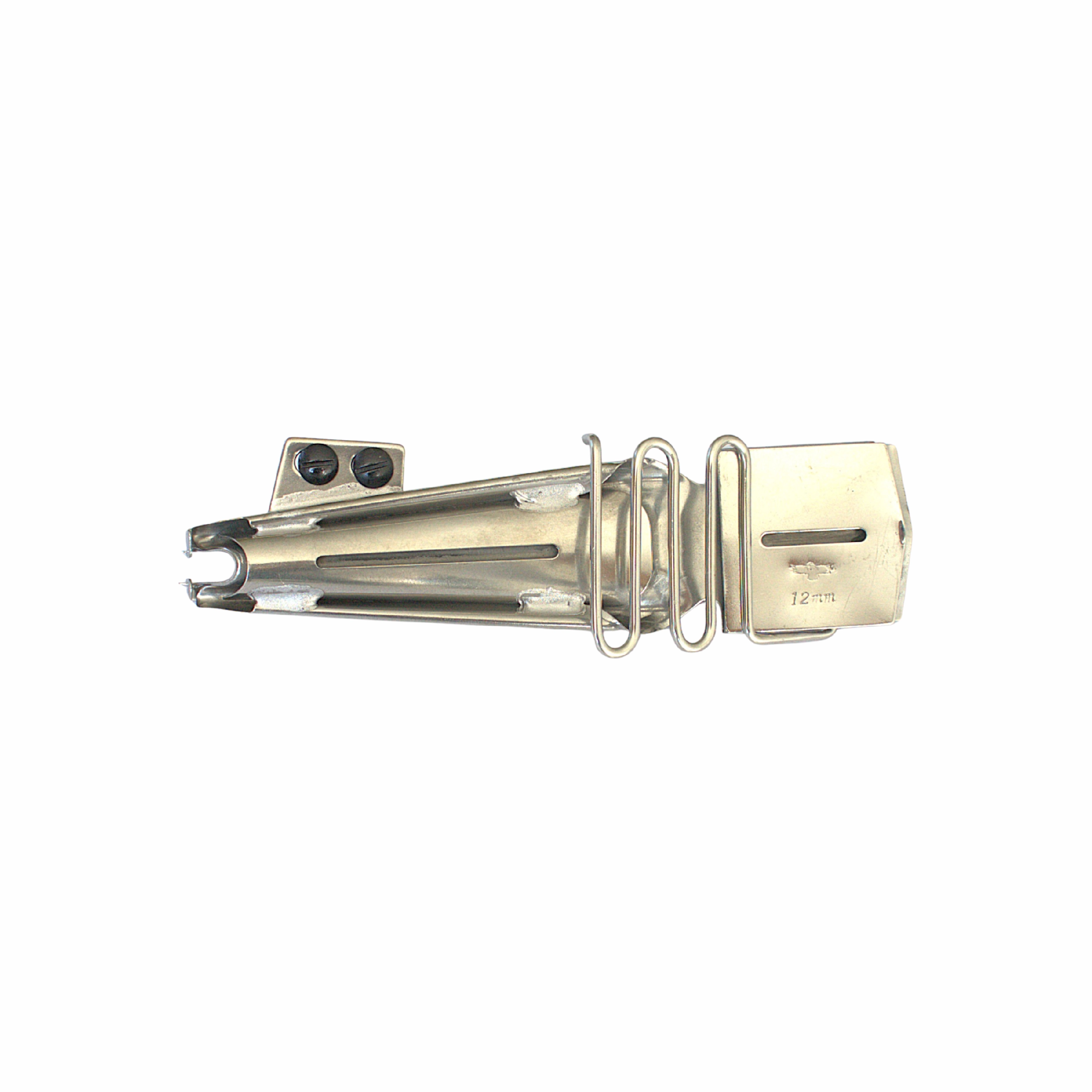 Diseñado para aplicar cinta o bies en ambos lados de la costura, logrando un acabado totalmente cubierto, limpio y uniforme. Fabricado en acero resistente.