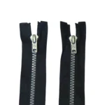 Cierre fabricado en plástico resistente, con acabado metálico tipo aluminio que aporta estética moderna y funcionalidad a cada prenda. Ideal para chamarras.