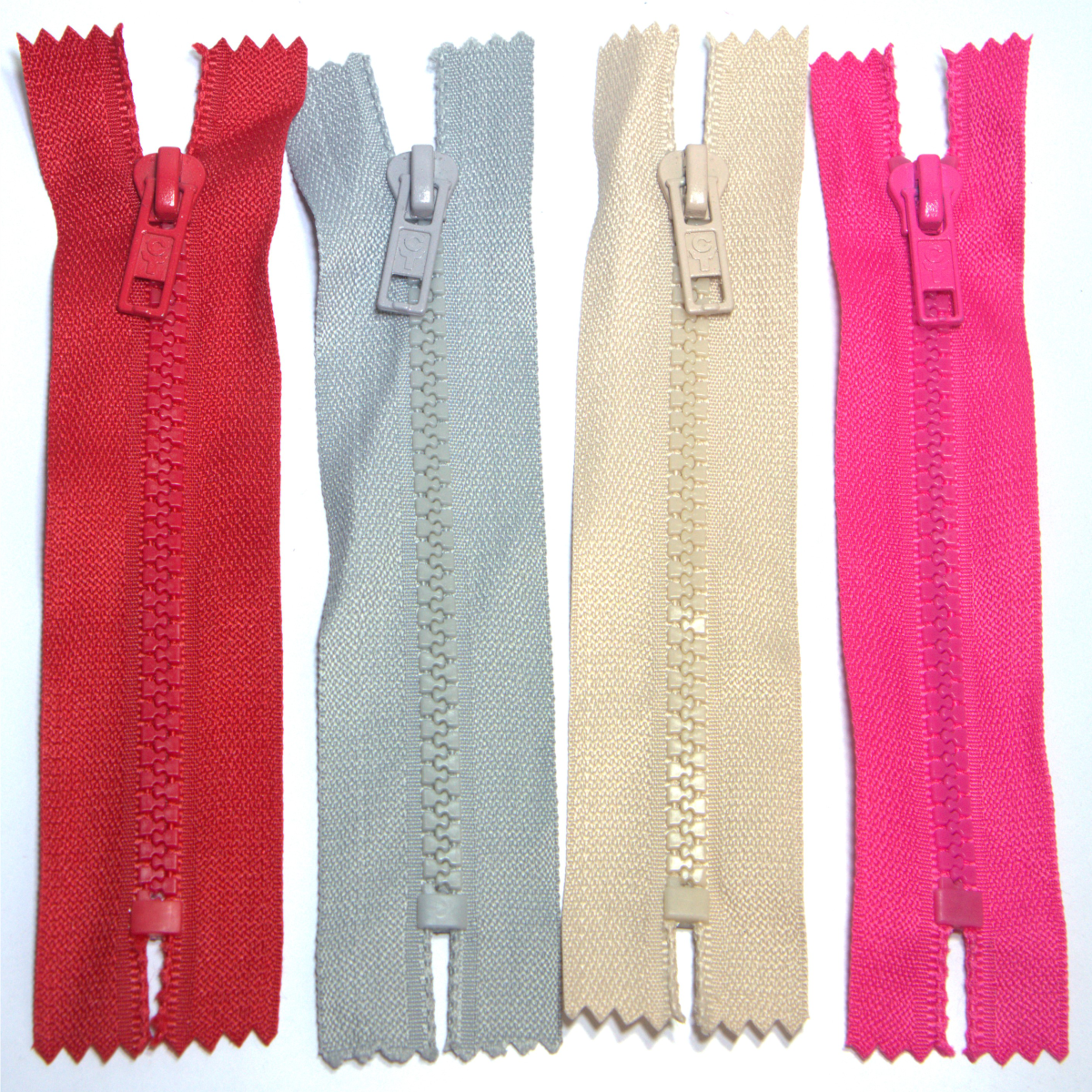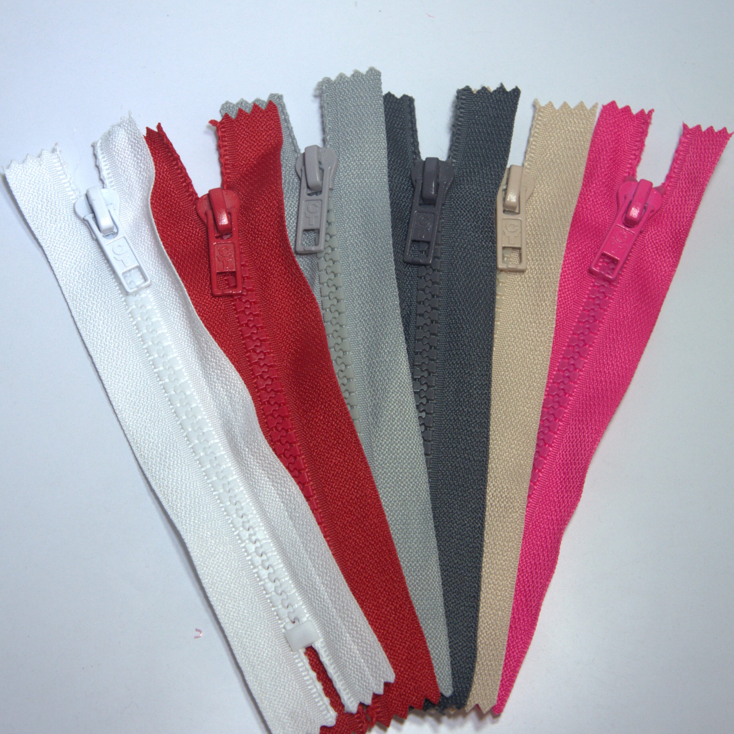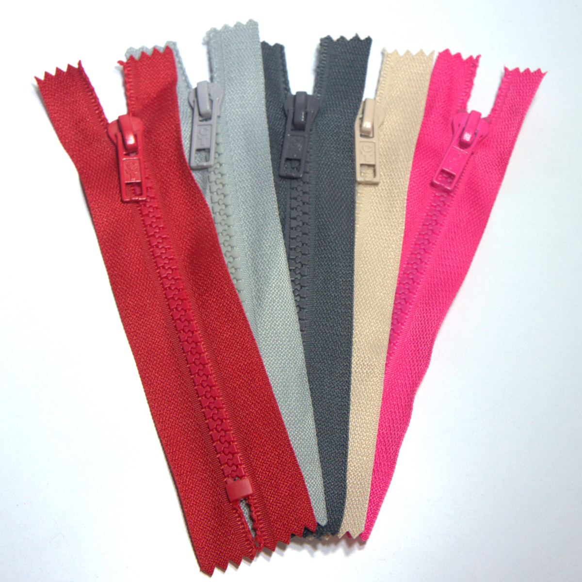 Cierre fijo moldeado de plástico o resina del número 5, alta resistencia, disponible en variedad de colores .