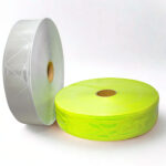 Cinta reflejante de PVC en rollo de 100 metros. Disponible en verde y plateado. Ideal para confección, señalización y seguridad industrial.