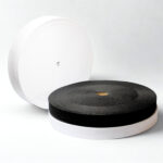 Disponible en color blanco y negro, se presenta en múltiples configuraciones de ligas, con medidas expresadas en centímetros y pulgadas para adaptarse a diferentes necesidades de costura.