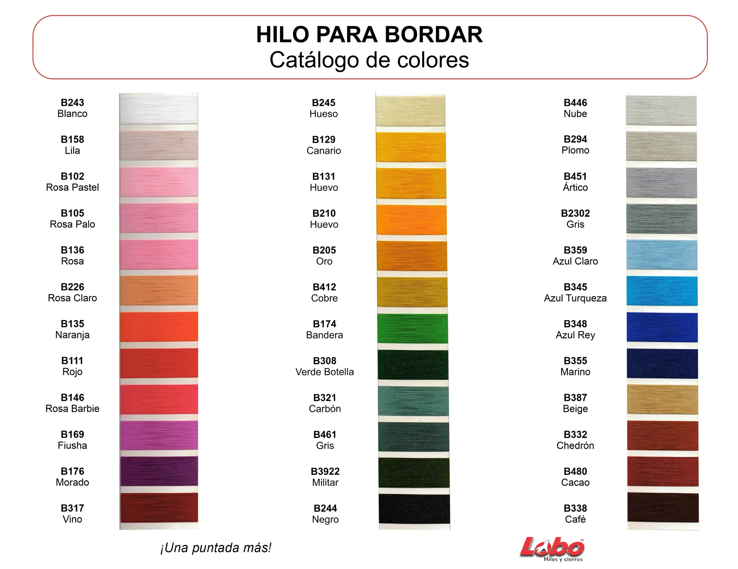 Hilo para bordado en máquina con alta calidad y brillo extraordinario, amplia variedad de colores, presentación 5000 metros.