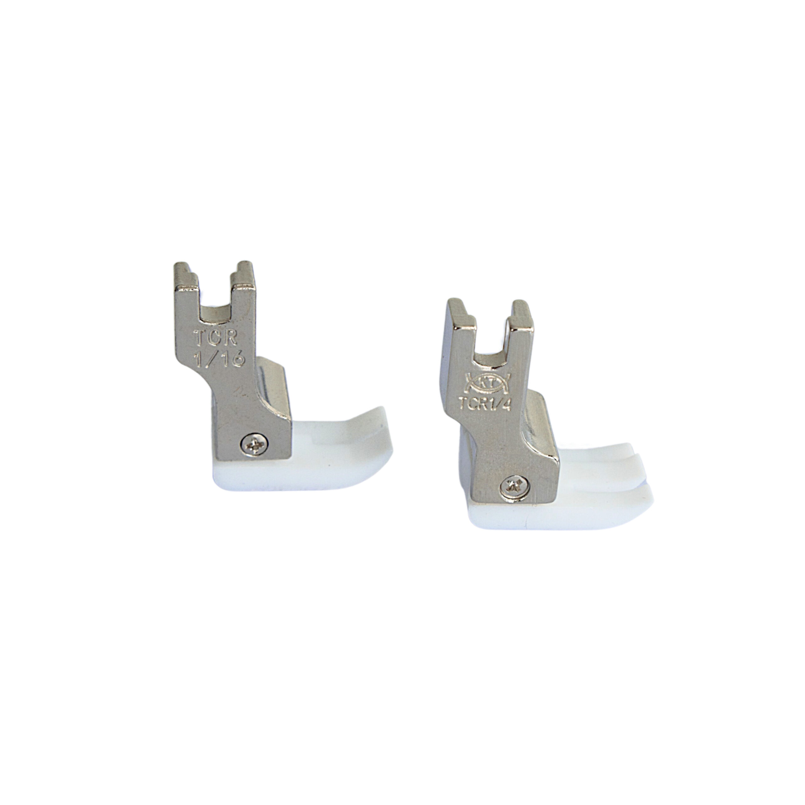 Prensatela compensado derecho con base de teflón, disponible en medidas 1/16 y 1/4. Ideal para máquinas rectas industriales.