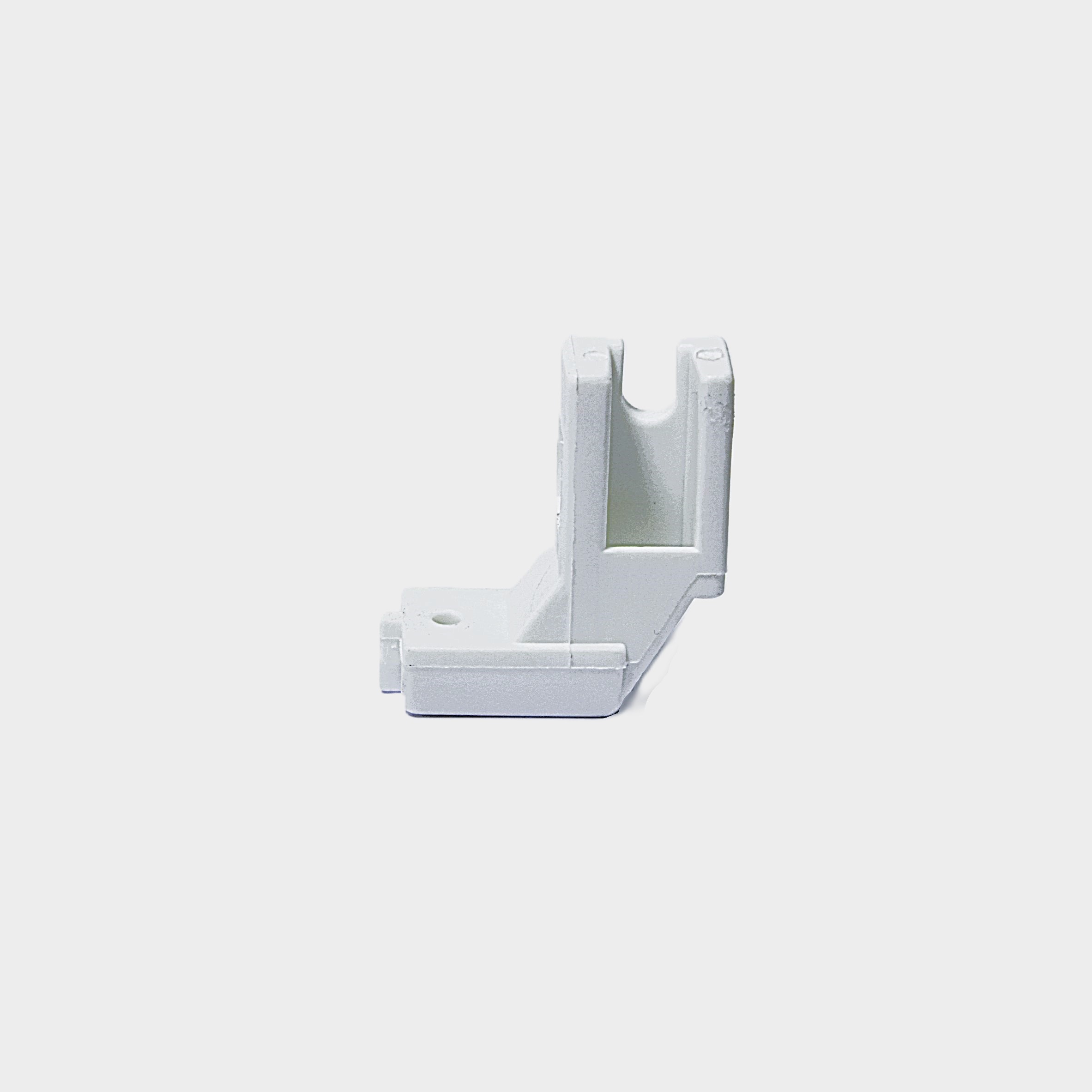 Pie prensatelas modelo S518P fabricado en plástico resistente, ideal para instalar cremalleras invisibles en prendas delicadas. Compatible con máquinas industriales.